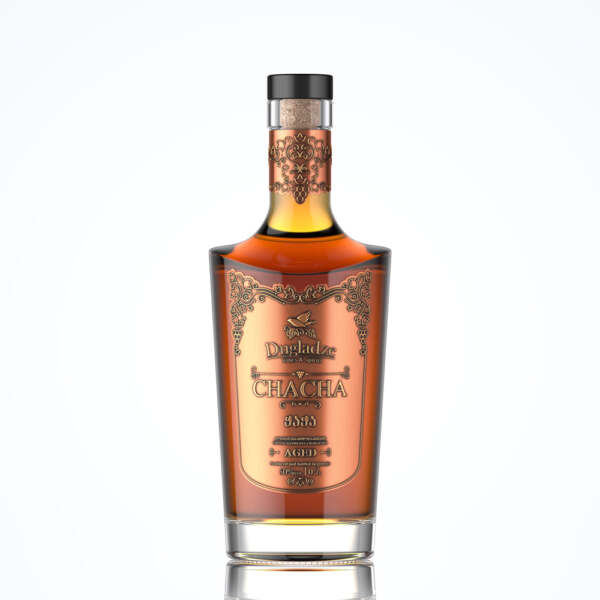 It is made by double distillation of grape husks based on traditional technology. Dugladze Chacha Aged is made from Rkatsiteli and Gorui Mtsvane grape varieties.